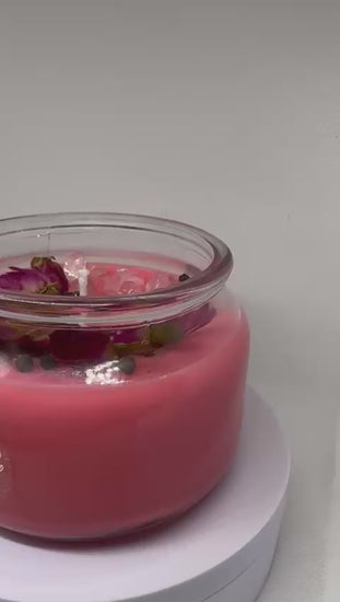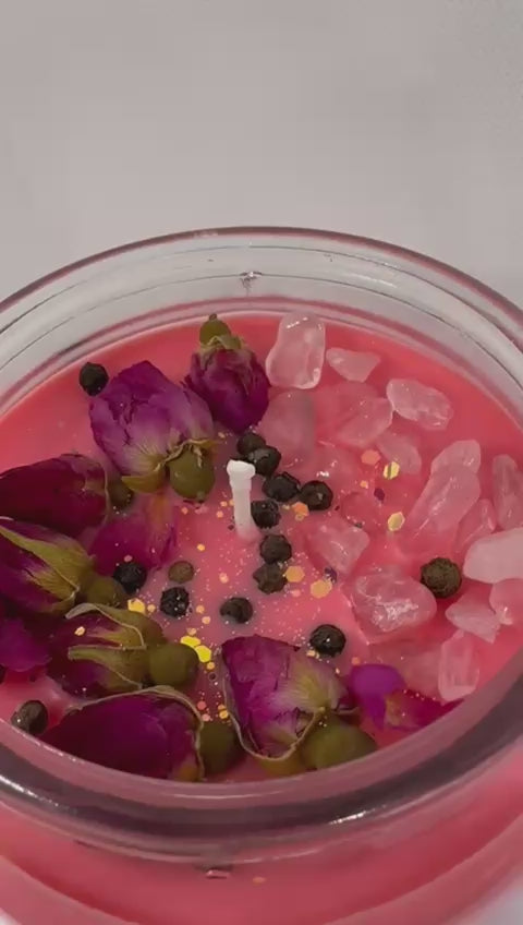 Passion is a red candle that stimulates impulse and facilitates communication. But combined with black pepper, with its warm and spicy aroma that awakens the senses, and rose quartz, which opens the Heart Chakra and purifies it at all levels to attract all forms of Love: Self-Love, Platonic Love, and True and Deep Love, they create a bomb of romance in a candle.